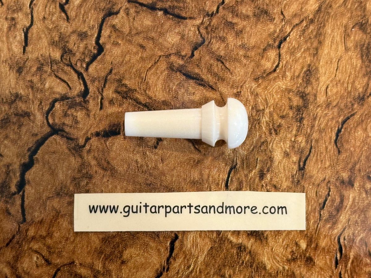For some reason people get to this page thinking this is a bridge pin for the guitar strings. This is an end pin that goes in the body of the guitar - not a bridge pin. Our bridge pins can be found on our bridge pin page.