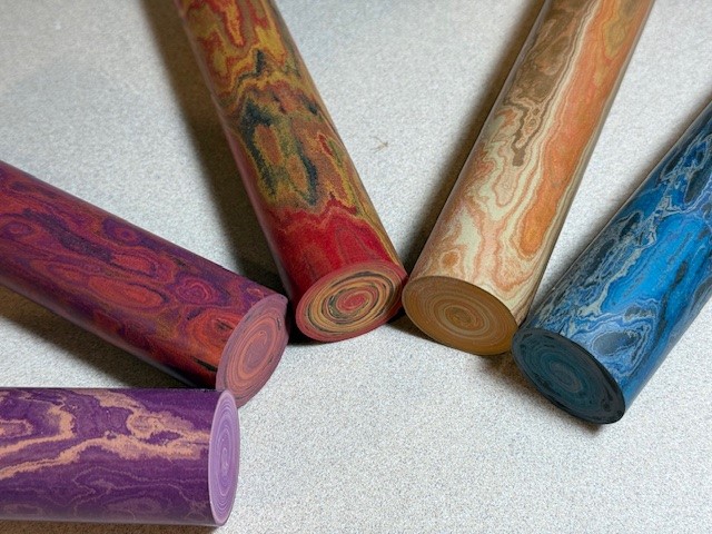 The intense color swirls throughout the rod. Click on photo for details & working/polishing instructions.